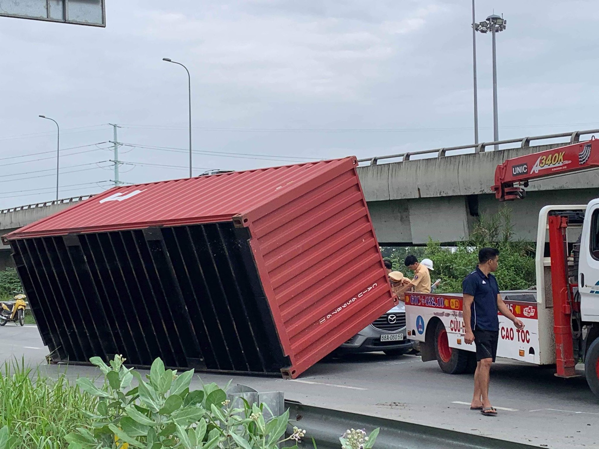 Khi đến đường dẫn lên cao tốc TP. HCM – Long Thành – Dầu Giây, phường Phú Hữu (quận 9, TP. HCM) thì thùng container trên xe đầu kéo lật xuống đường. Đúng lúc này một ô tô con lưu thông tới, bị thùng container đè trúng. Tài xế ô tô vô cùng hoảng loạn vì thoát chết trong gang tấc. Vụ tai nạn khiến ô tô con hư hỏng nhẹ do thùng container chỉ đè trúng phần mép bên trái của phương tiện.