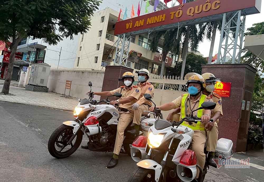 Cùng lúc chốt kiểm soát Covid-19 đường Phan Văn Hớn - Trường Chinh, phường Tân Thới Nhất, quận 12 kiểm tra người và phương tiện rất chặt. Nhiều trường hợp ra đường không rõ lý do bị xử phạt. Đến 18h30 một số xin qua chốt vì lý do đi làm về.