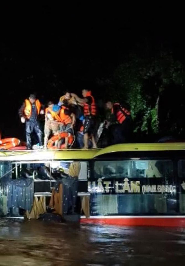 Trong quá trình di chuyển qua vùng lũ, chiếc xe không may bị nước cuốn trôi khoảng 100m nhưng may mắn không bị lật. Thời điểm bị nước cuốn, chiếc xe khách mất điện nên không thể mở được cửa, hành khách buộc phải phá cửa kính, trèo lên nóc xe kêu cứu, chờ lực lượng cứu hộ tới hỗ trợ.