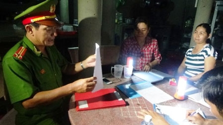 |   						   Trung tá Trương Sỹ Trung, đội trưởng đội nghiệp vụ 4 Phòng cảnh sát phòng chống tội phạm về môi trường Công an tỉnh Bình Thuận giải thích hành vi vi phạm pháp luật của chủ lò mổ bò - Ảnh: NG.NAM  |