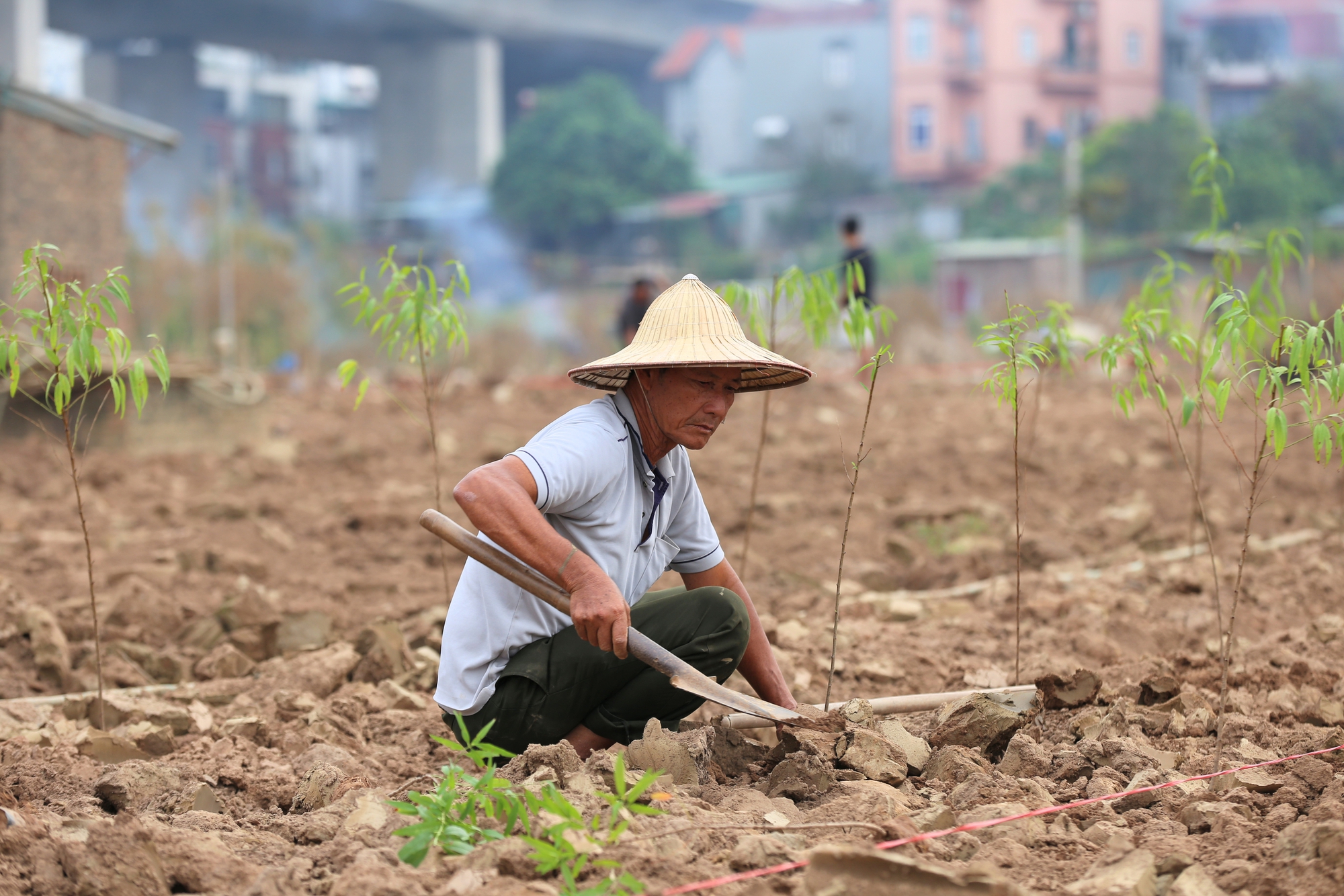 Do giá cây đào giống đắt, nguồn cung ít, nhiều chủ vườn đành phải chấp nhận chờ đến Tết để mua. Trong quá trình chờ đợi, họ trồng hoa cúc, su hào, cải bắp,... để đến Tết bán