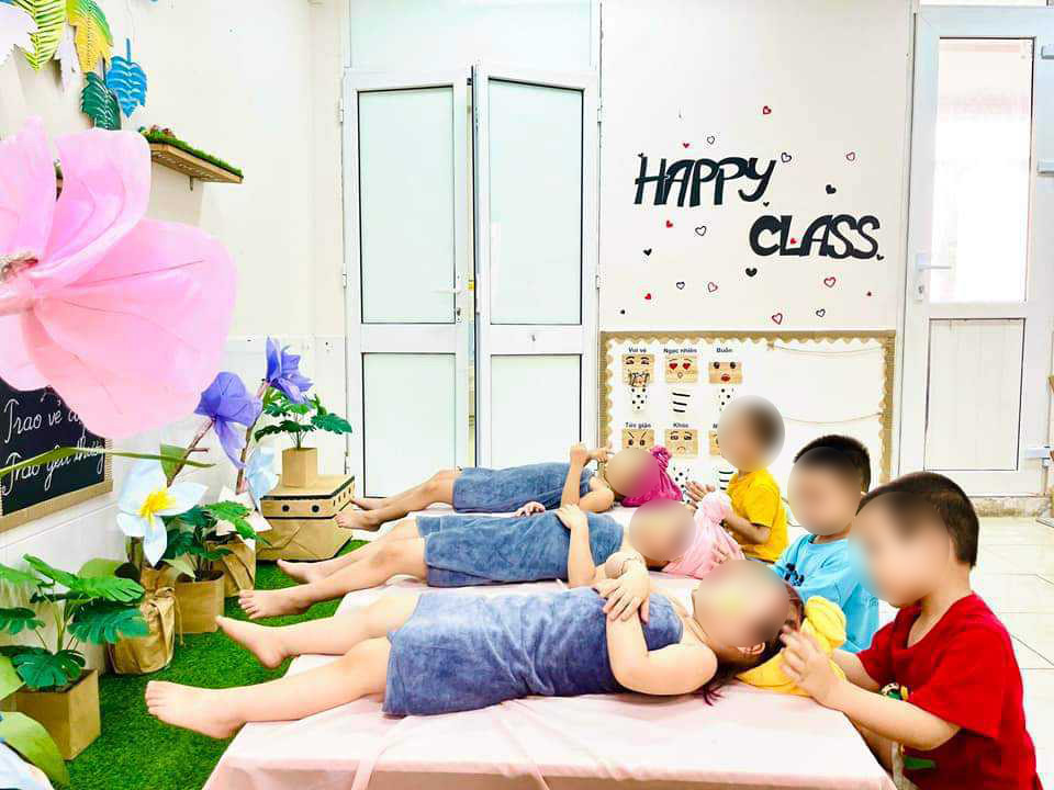 Mới đây, phụ huynh có con theo học lớp mẫu giáo nhỡ của Trường Mầm non Bình Minh (Hoàng Mai, Hà Nội) cho biết nhân ngày 20/10, trường học của con tổ chức hoạt động cho bé trai rửa chân và massage đầu cho các bạn gái.