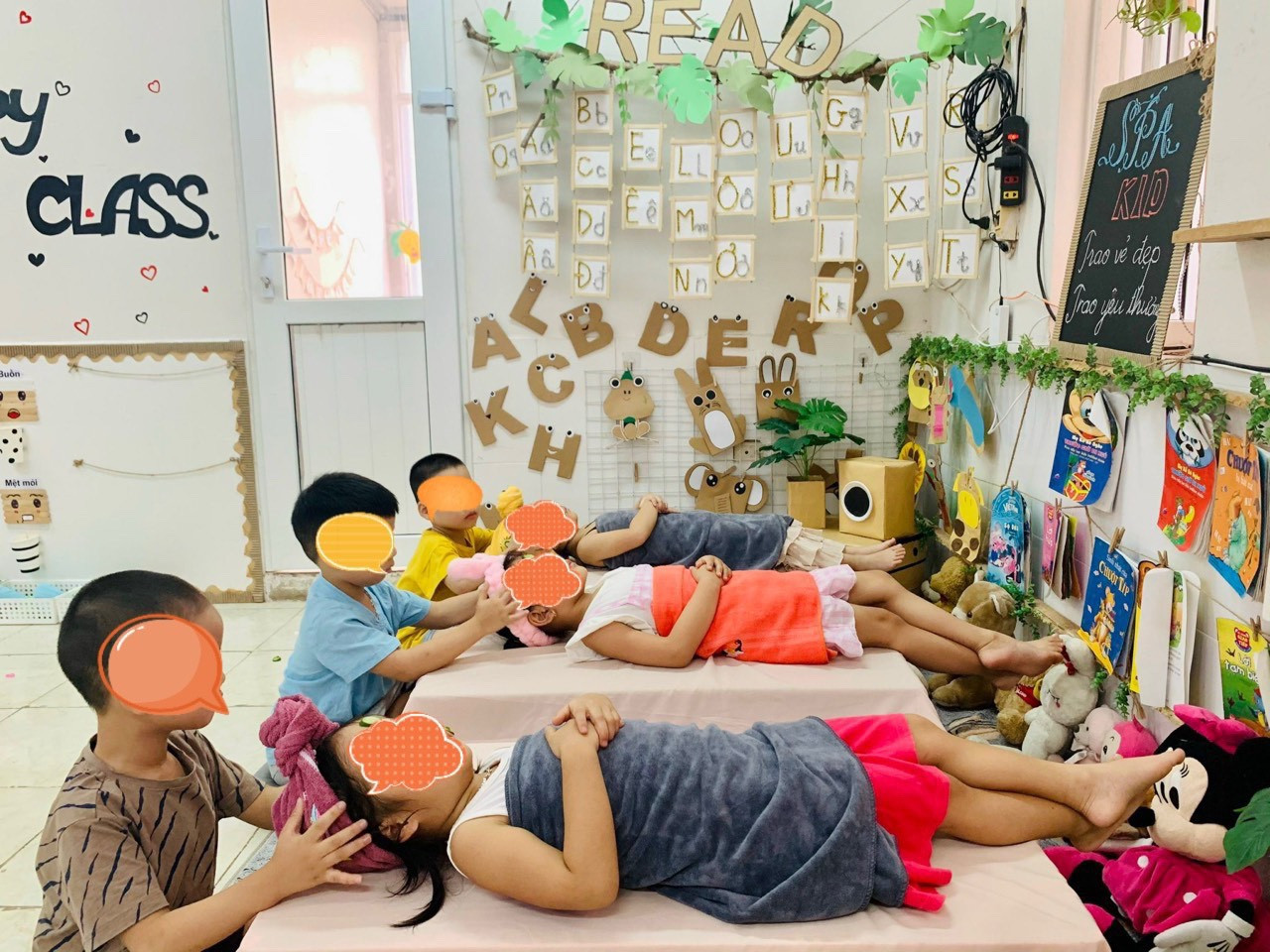 Theo phụ huynh này, khi tham gia hoạt động, các bé gái được cởi quần áo, quần khăn như spa để các bạn trai massage đầu. Phụ huynh cho rằng điều này là “không cần thiết, gây phản cảm, hớ hênh với các bạn gái, nhất là khi bé gái quấn khăn ngồi cho bé trai rửa chân bên dưới”.