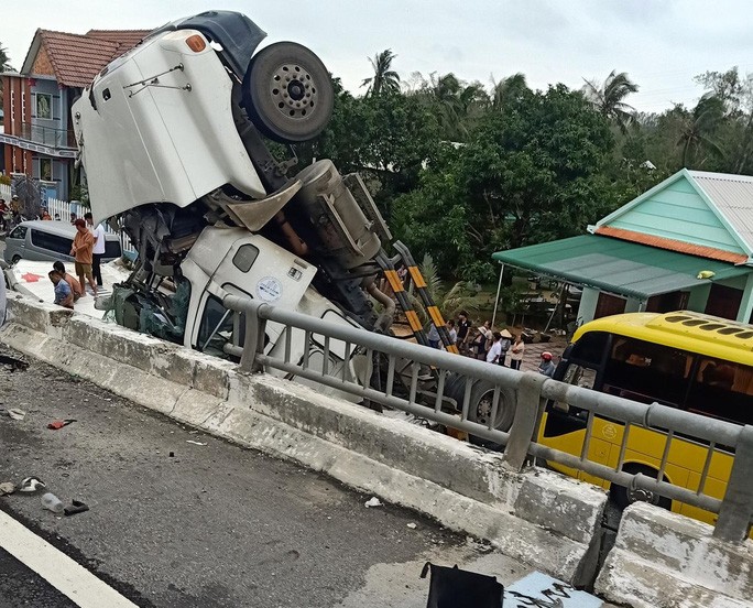 Rất may, thời điểm xảy ra vụ tai nạn không có phương tiện lưu thông phía dưới và tài xế container chỉ bị thương nhẹ.