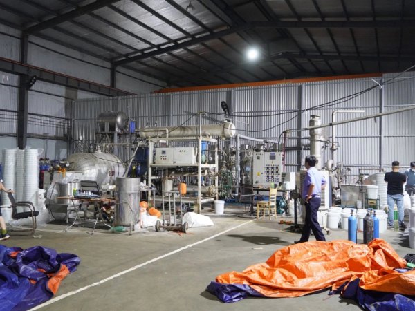 Mở rộng điều tra, Công an Thanh Hóa phối hợp Bộ Công an và công an các địa phương khám xét khẩn cấp ba nhà xưởng tại huyện Thanh Oai, Thạch Thất và Chương Mỹ (Hà Nội). Tại đây, công an thu giữ 850 bình kim loại (trong đó hơn 370 bình chứa khí N2O), gần 140 tấn nguyên liệu sản xuất khí cười và ba dây chuyền máy móc.