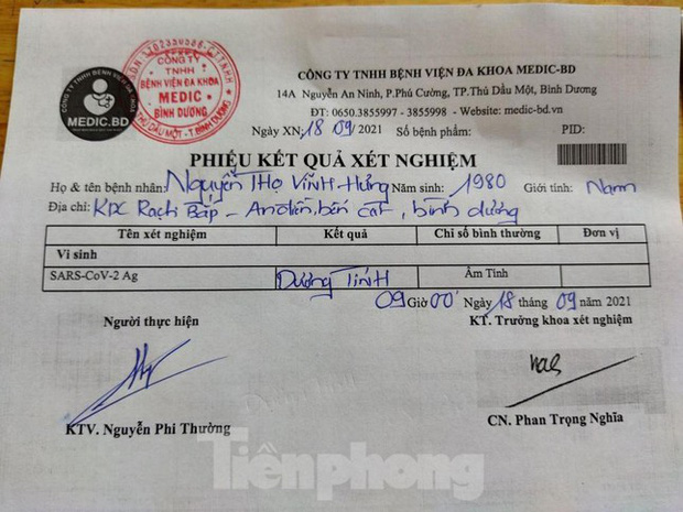 Tại đây, tài xế trình giấy xét nghiệm kết quả âm tính. Lực lượng chức năng nghi ngờ giấy có chỉnh sửa và tài xế thừa nhận đã sửa lại ngày. Cụ thể, giấy xét nghiệm vào ngày 21/8 nhưng đã sửa thành ngày xét nghiệm 17/9. Tài xế cho biết, lý do sửa ngày để thuận tiện cho việc đi lại.