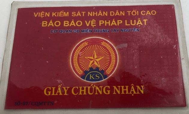 Sau đó, tài xế xuống xe đã xuất trình 1 Giấy chứng nhận có tên Nguyễn Văn Báu là cán bộ tuyên truyền - PHQC của cơ quan đại diện miền Trung - Tây Nguyên, Báo Bảo vệ pháp luật.