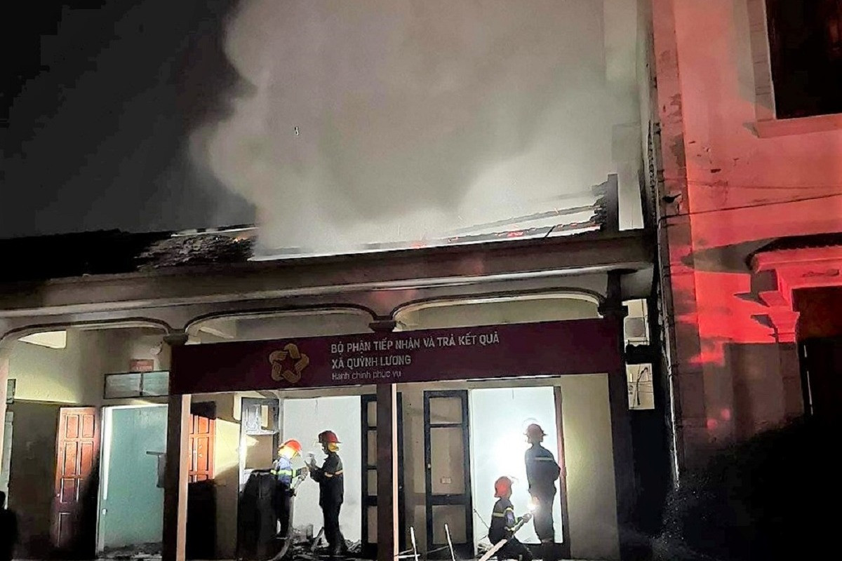 Theo thông tin trên VietNamNet, vào khoảng 21h ngày 3/4, một số cán bộ và người dân sinh sống gần trụ sở phát hiện khói nghi ngút bốc lên tại nơi làm việc của UBND xã Quỳnh Lương.