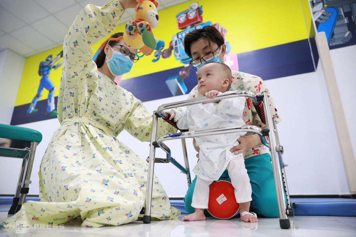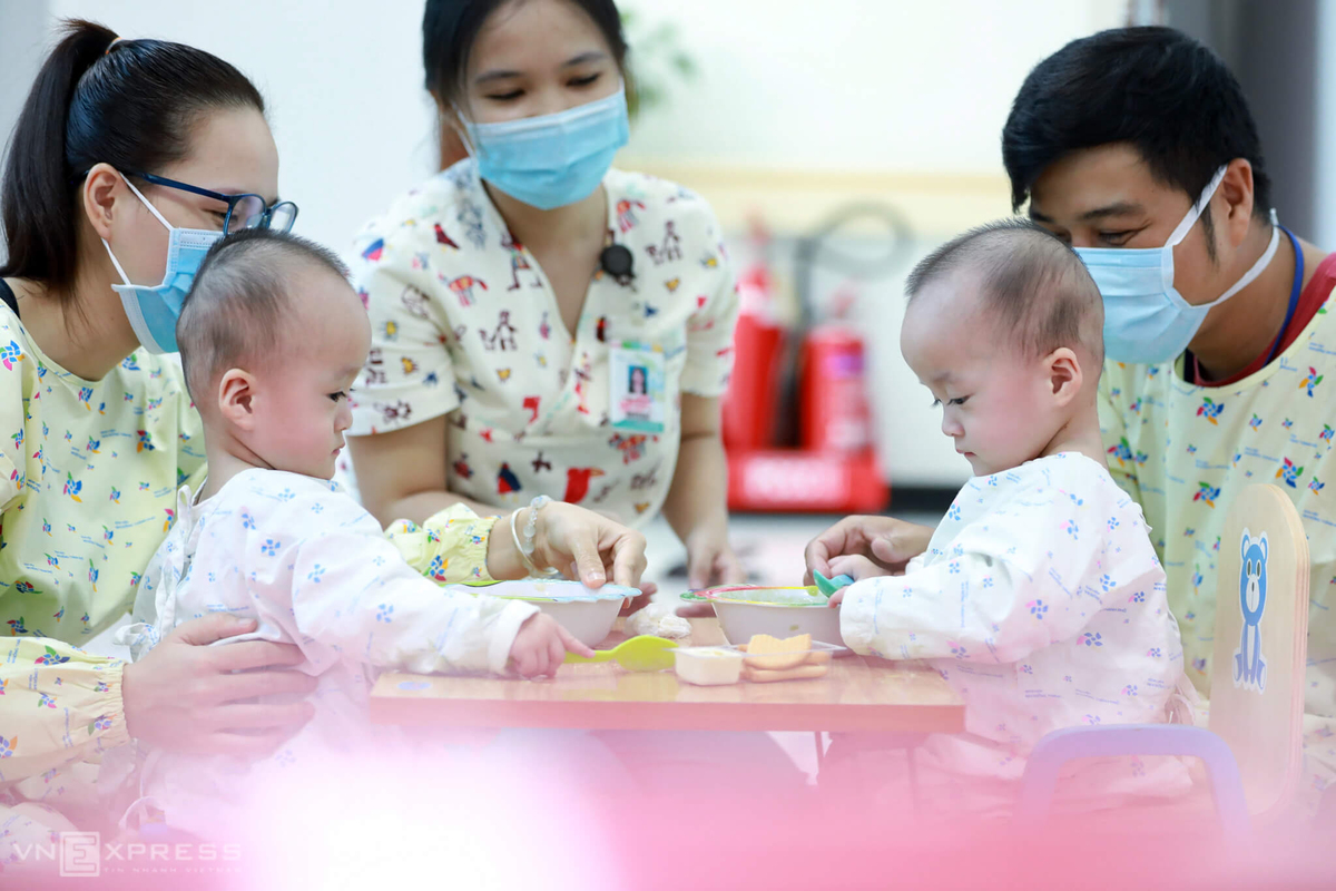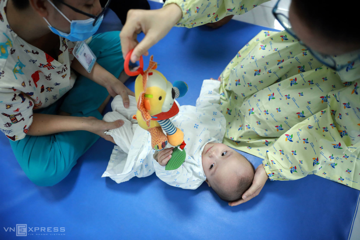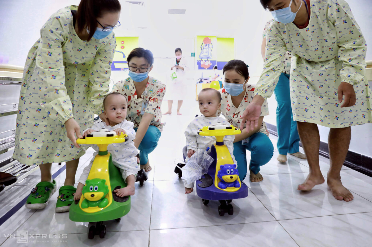 "Thấy hai con khoẻ, vận động được, tôi cảm thấy rất nhẹ nhõm và mừng rơi nước mắt. Gia đình xin cảm ơn toàn bộ các y bác sĩ Bệnh viện Nhi Đồng Thành phố đã giúp hai bé được khoẻ mạnh như ngày hôm nay", chị Trần Thị Hồng Thúy, mẹ bé nói.