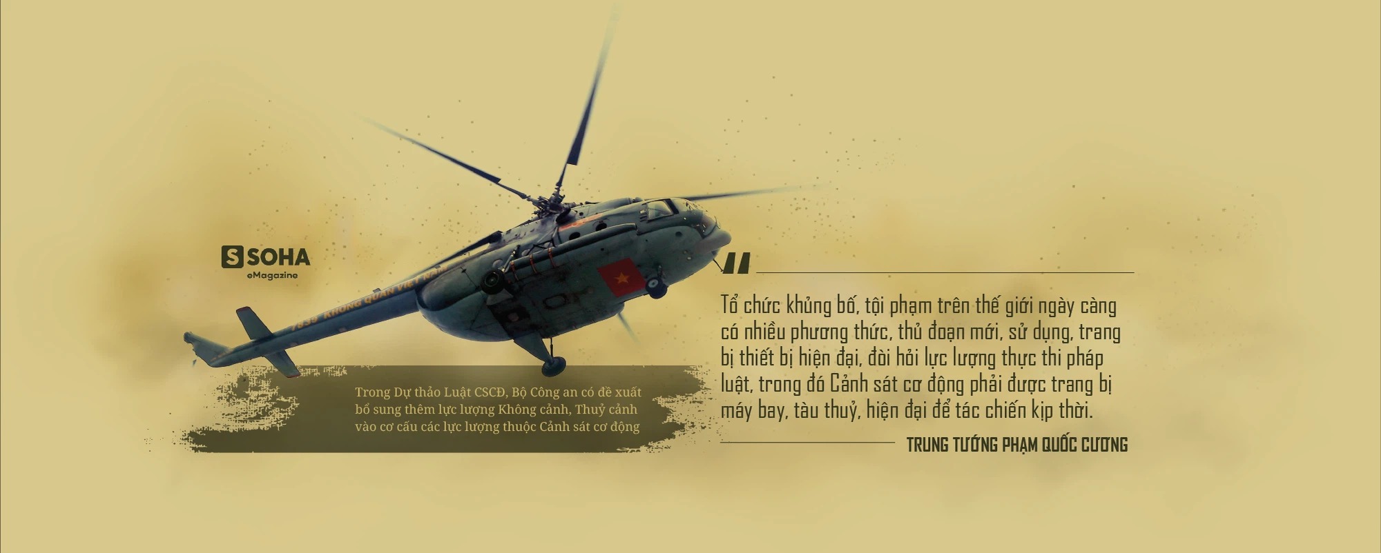 - Vậy trong tương lai, Cảnh sát cơ động Không cảnh sẽ đảm nhiệm các nhiệm vụ sử dụng máy bay để chiến đấu trực tiếp hay phải cần sự hỗ trợ từ Bộ Quốc phòng?
