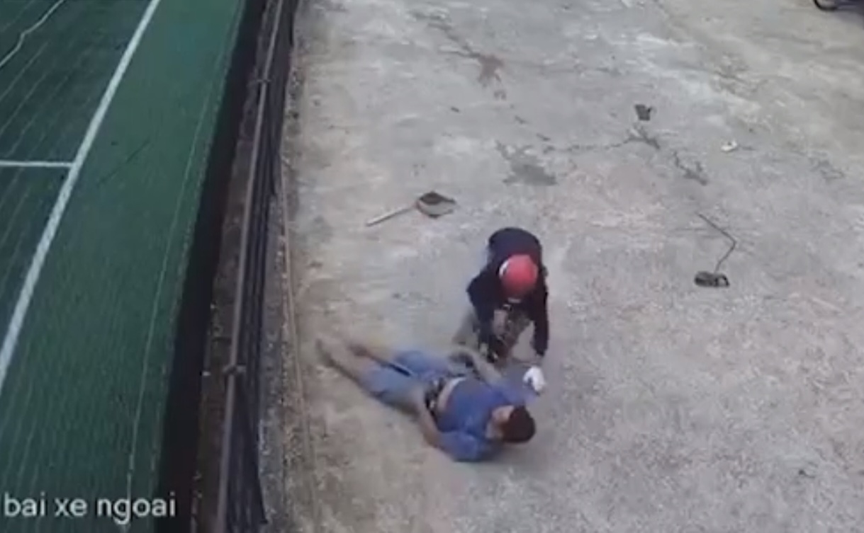 Những người đang chơi bóng gần đó đã dũng cảm lao vào giải cứu. Một thanh niên dùng chổi và vật cứng đối đầu với kẻ tấn công nhưng cũng bị hắn quay lại tấn công ngã. Chỉ khi thấy đông người hơn nữa ập đến, đối tượng mới vội vàng tẩu thoát.