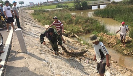 Như Tiền Phong online đã đưa tin vào khoảng 9h sáng ngày 10/4 Lê Ngọc Vân một người dân thôn An Thọ khi đi qua cầu Gò Làng thuộc địa phận xã Bình An (Thăng Bình) đi trên QL 1A phát hiện cá sấu nằm phơi nắng, há miệng bên bờ ruộng.