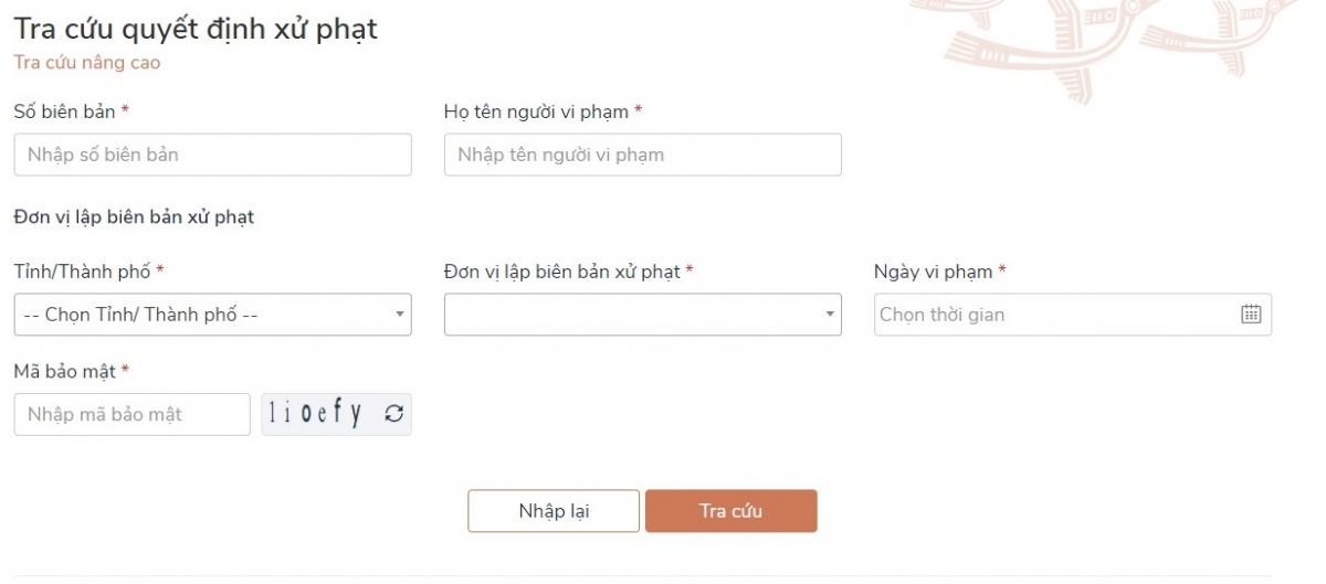 Bước 1: Cảnh sát giao thông nhập biên bản vi phạm hành chính vào hệ thống phần mềm xử lý vi phạm, hệ thống sẽ tự động ra quyết định xử phạt, số quyết định này thực hiện theo quy định của Chính phủ và sẽ là số duy nhất để người vi phạm có thể truy cập, tra cứu thông tin vi phạm của mình.
