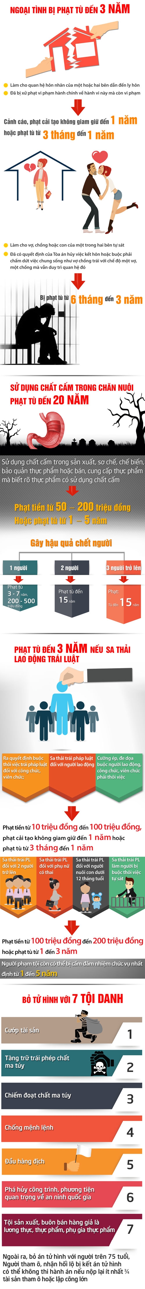 Cùng chúng tôi điểm lại 4 điều luật về: ngoại tình, sử dụng chất cấm trong chăn nuôi, sa thải người lao động trái pháp luật, bỏ tử hình với 7 tội danh sẽ có hiệu lực vào ngày 1.7.2016 tới đây.