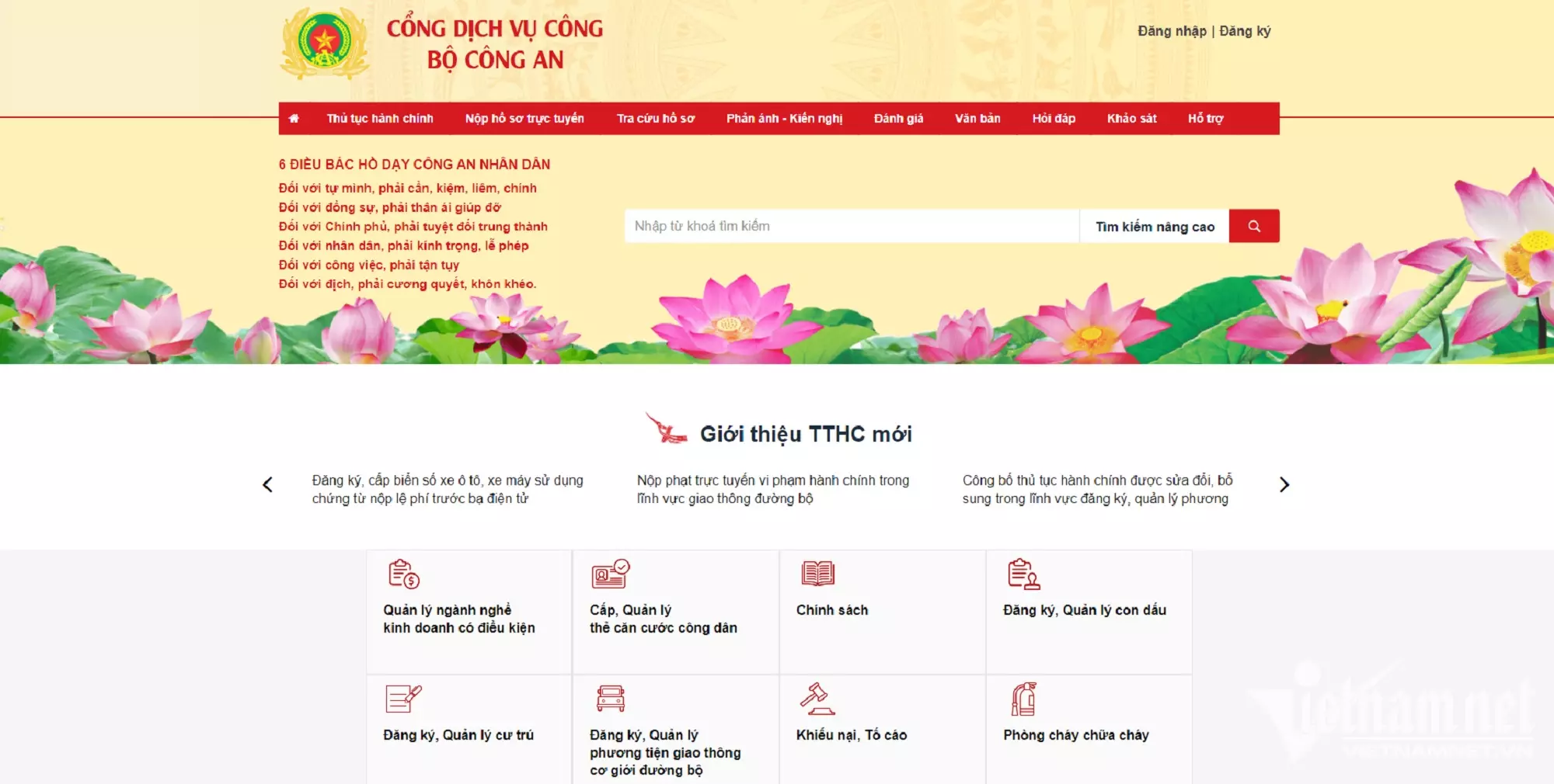 Bước 1: Truy cập https://dichvucong.bocongan.gov.vn/