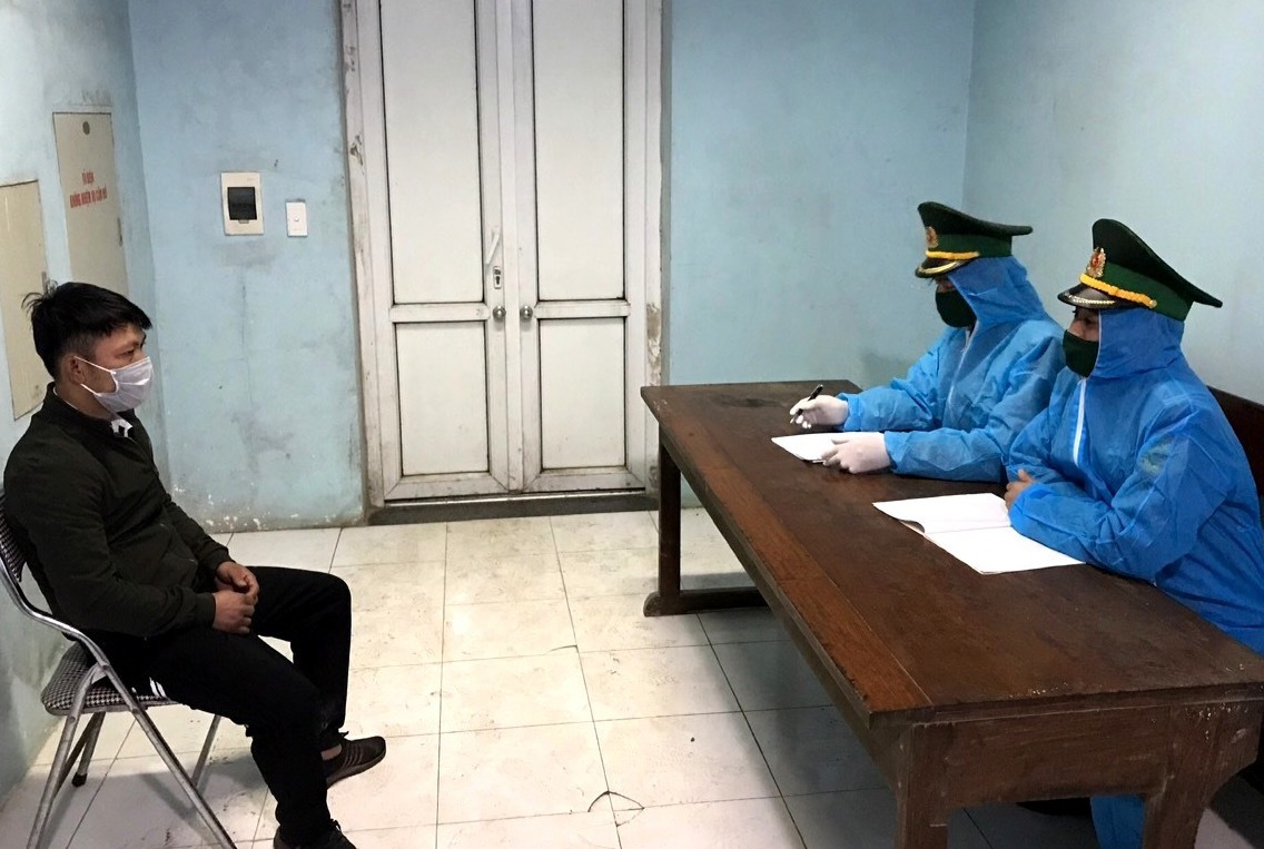 Bộ đội Biên phòng Hà Tĩnh làm thủ tục đưa ông Y. đi cách ly tập trung theo quy định phòng dịch Covid-19.