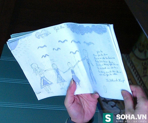 Có lần, H. gửi vào cho Khanh bức tranh H vẽ. Bức tranh có 4 người. Nét vẽ nguệch ngoạc, nhưng H. đã ghi tên 4 thành viên trong gia đình dưới chân mỗi nhân vật mình vẽ.