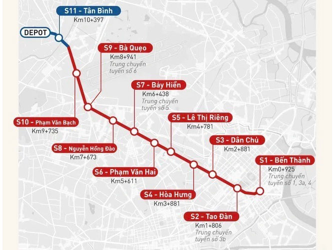 Năm 2010, tuyến metro số 2 giai đoạn 1 (tuyến Bến Thành - Tham Lương) được phê duyệt quy hoạch, dự kiến khởi công năm 2014, hoàn thành sau 4 năm. Metro số 2 đi qua địa bàn 6 quận: 1, 3, 10, 12, Tân Bình, Tân Phú. Tổng diện tích dự án cần thu hồi là hơn 251.000 m2, với 603 trường hợp bị ảnh hưởng.
