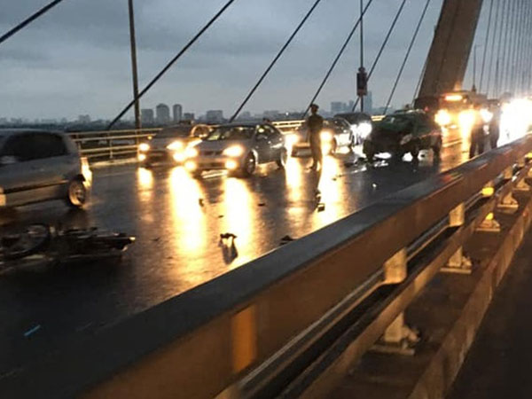 Tai nạn xảy ra sáng sớm 7/9 trên cầu Nhật Tân hướng Tây Hồ - Đông Anh (quận Tây Hồ, Hà Nội).
