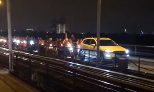 Trước đó, vào khoảng 22h ngày 11/5, chiếc xe ô tô nhãn hiệu Mazda CX-5 BKS 30F-326.23 lưu thông trên cầu Long Biên từ quận Hoàn Kiếm hướng sang quận Long Biên. Hành vi của lái xe đã gây bức xúc cho những người tham gia giao thông khi toàn bộ dòng phương tiện 2 bánh phía sau xe ô tô này bị dồn ứ lại.