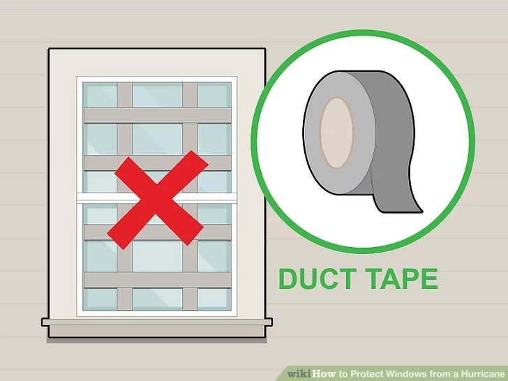 Có rất nhiều thông tin sai lệch về an toàn khi có bão, và một quan niệm sai lầm dai dẳng là dán băng keo theo hình chữ X hoặc lưới lên cửa sổ sẽ giúp gia cố. Điều này là không đúng! Băng keo sẽ không bảo vệ bạn khỏi bão.