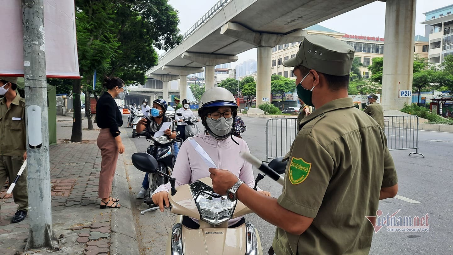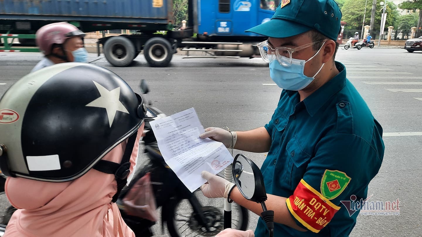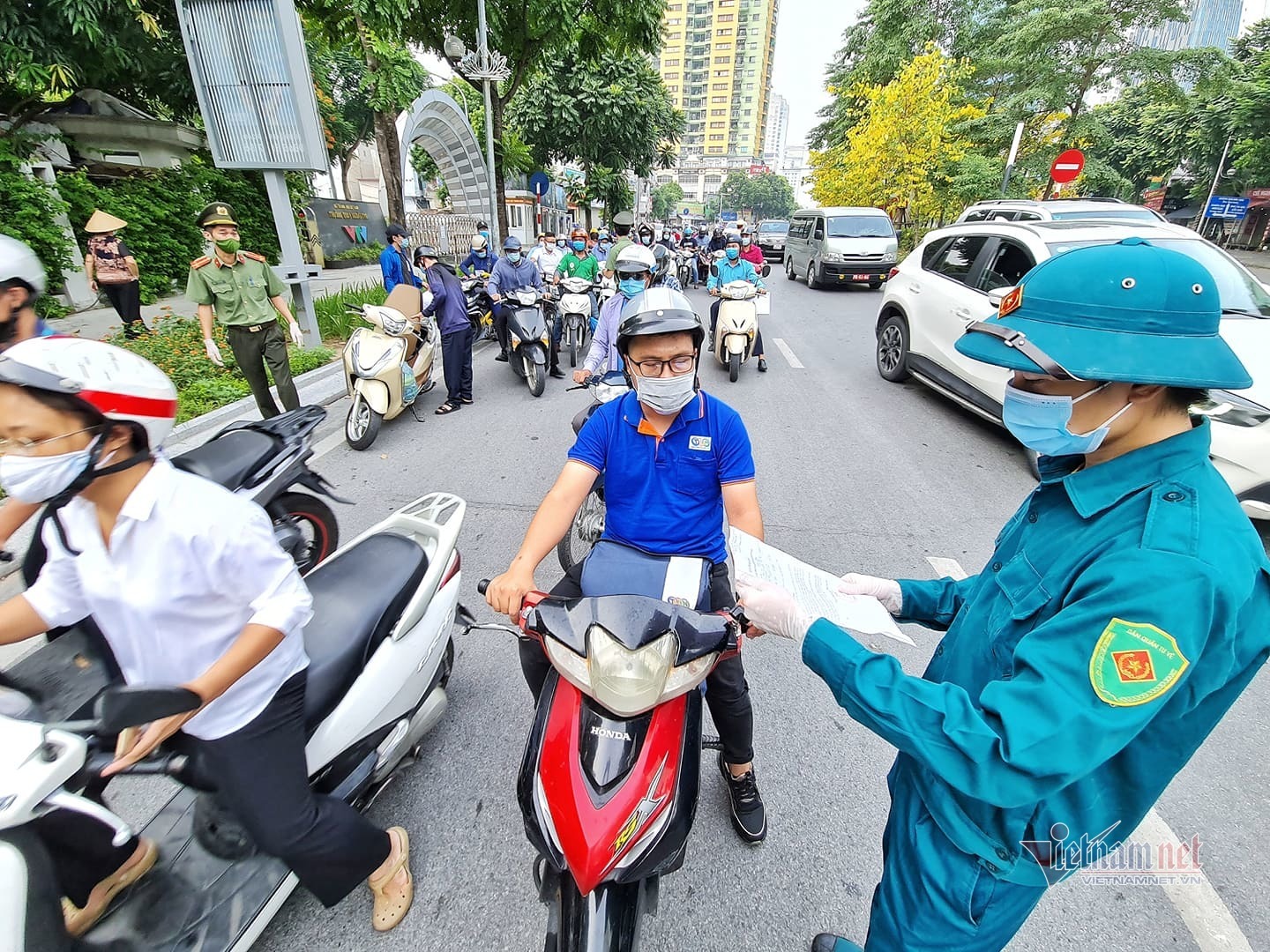 Đầu giờ sáng, phóng viên VietNamNet đã có mặt ở nhiều điểm chốt kiểm soát tại các quận ở Hà Nội để ghi nhận việc kiểm tra lý do ra đường trong ngày đầu Hà Nội thực hiện quy định mới.