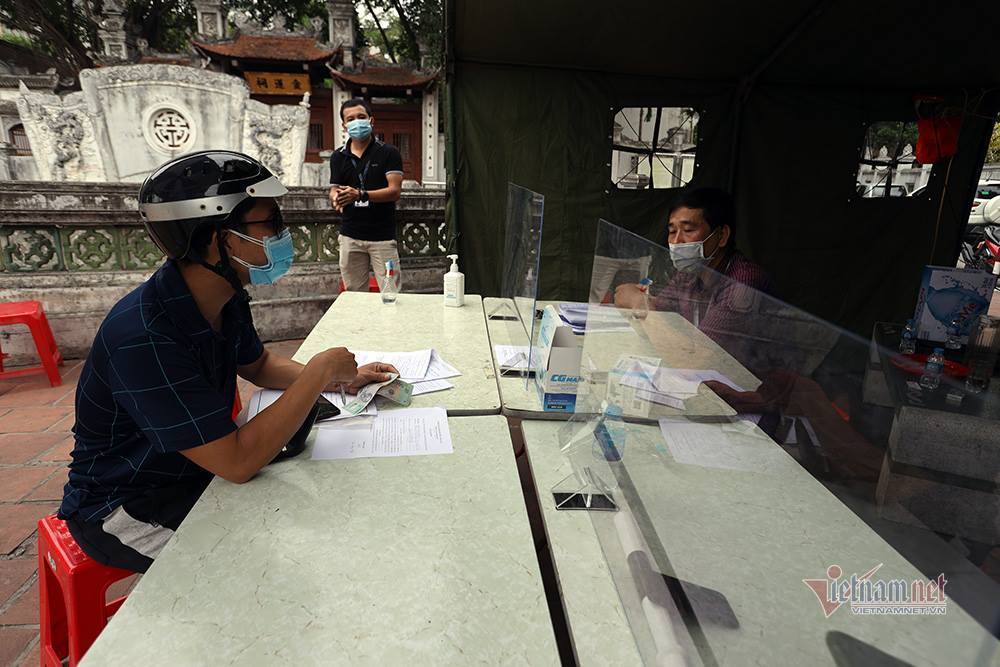 Khoảng 7h30, tại chốt kiểm soát dịch tại ngõ 83 phố Đào Tấn (phường Ngọc Khánh, Ba Đình), hàng dài phương tiện nối đuôi nhau đi qua chốt. Tại đây, người dân xuất trình giấy đi đường và giấy tờ tùy thân hợp lệ thì sẽ được qua chốt. Việc kiểm tra lịch trực, lịch làm việc vẫn chưa thực hiện triệt để.