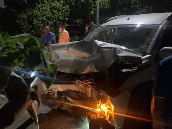 Cú tông khiến chiếc ô tô bị biến dạng phần đầu, 2 người trên xe chết tại chỗ.