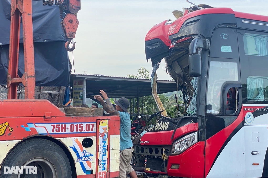 Ghi nhận tại hiện trường cho thấy, phần đầu xe khách bị hư hỏng nặng, vỡ nát hoàn toàn, kính và nhiều mảnh vỡ văng khắp mặt đường. Hậu quả của vụ tai nạn đặc biệt nghiêm trọng: phụ xe khách là anh V.H.A. (sinh năm 2005, trú tại Nga Yên, Nga Sơn, Thanh Hóa) đã tử vong tại chỗ. Ngoài ra, 5 người khác bị thương, trong đó có hai trường hợp bị gãy chân và đang được cấp cứu tại Bệnh viện Trung ương Huế.