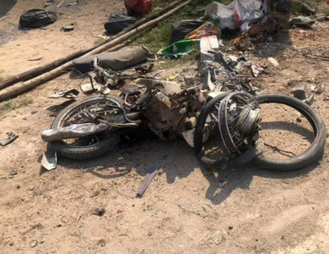 Cú va chạm mạnh khiến xe máy văng ra đường, bị ôtô cán nát, người phụ nữ điều khiển xe máy tử vong tại chỗ.