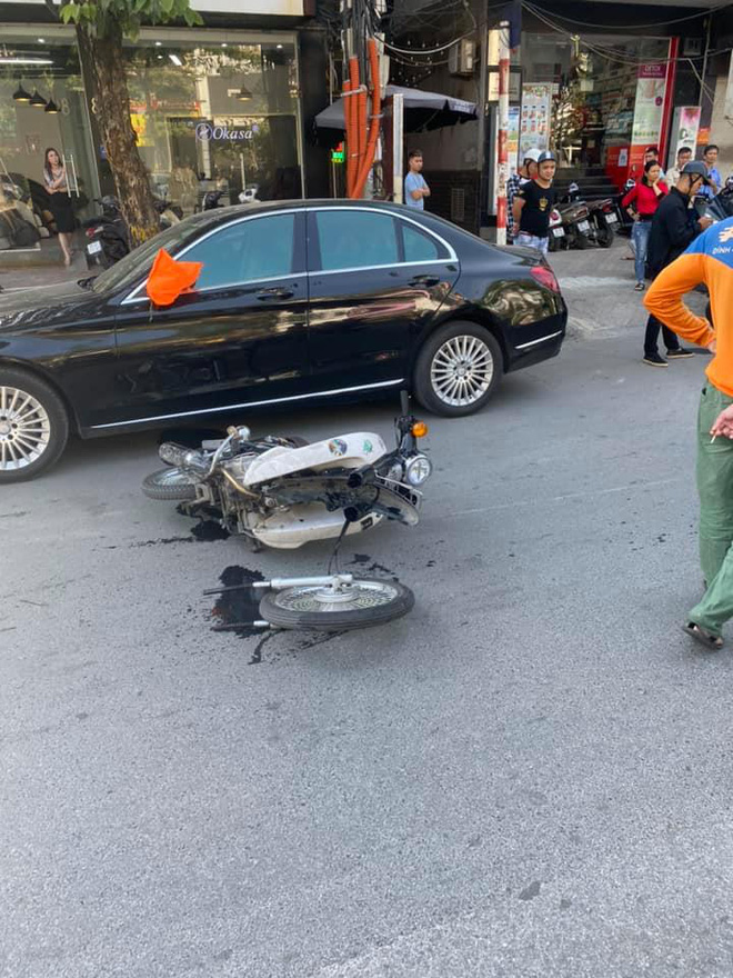 Theo như những hình ảnh được ghi lại từ hiện trường thì một nam sinh đi xe máy phân khối 50cc đã va chạm với chiếc Mercedes đang đỗ bên đường. Vụ va chạm có vẻ khá nặng nề đến mức khiến cho một bánh xe máy gãy rời ra ngoài, nhiều bộ phận khác của chiếc xe máy cũng hư hỏng.