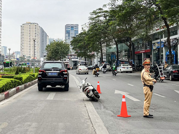 Theo đó, khoảng 21h30 ngày 27/3, bà Đ.T.Q. (64 tuổi, trú tại Hà Nội) điều khiển xe máy mang BKS 29G1-405.XX lưu thông trên đường Lê Văn Lương, hướng Cầu Giấy đi Thanh Xuân. Đến trước cửa số nhà 68 đường Lê Văn Lương, xe máy của bà Q. va chạm với ô tô biển xanh mang BKS 80A-042.XX.