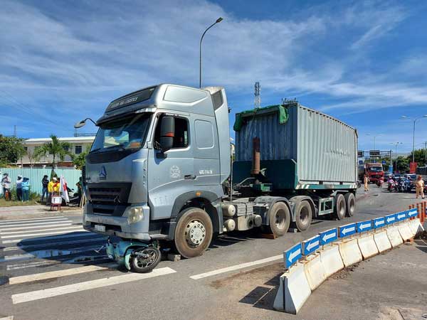 Đến nút giao thông phía Đông cầu Tiên Sơn, xe đầu kéo vào đường gom bên phải để rẽ lên cầu thì va chạm với xe máy BKS 43C1-356.38 do một phụ nữ chạy, chở con trai 6 tuổi.