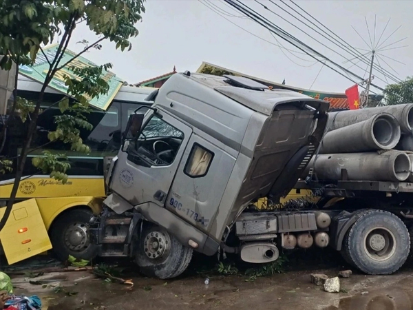 Khi đi qua địa phận phường Xuân Lâm, thị xã Nghi Sơn, tỉnh Thanh Hóa, xe đầu kéo bất ngờ va chạm ô tô khách biển kiểm soát 24G-000.xx do Nguyễn Thiên T. (trú phường Kim Tân, thành phố Lào Cai, tỉnh Lào Cai) điều khiển.