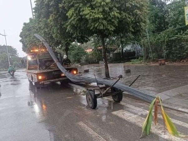 Khi đi đến gần cột đèn chiếu sáng số T2/51 trên đường Trịnh Văn Bô, xe của anh N. va chạm với xe ba bánh, kéo theo bó sắt dài gần 12m do anh Đ.V.T. (ở Yên Nghĩa, Ý Yên, Nam Định) điều khiển đi phía trước.