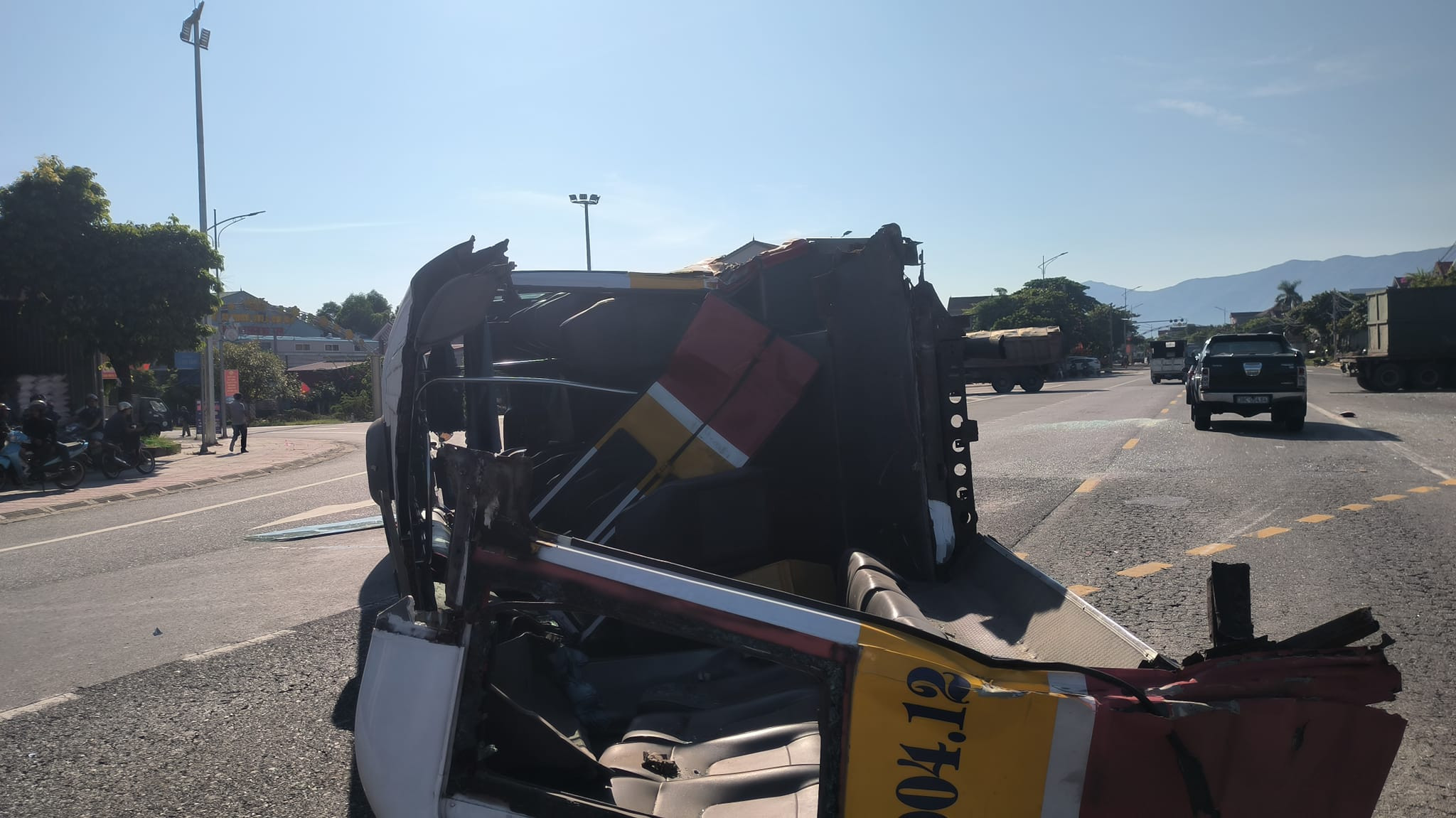 Cú tông mạnh khiến xe buýt lật nghiêng giữa đường, trên xe lúc này có khoảng 10 hành khách. Nhiều hành khách hoảng loạn, bị thương, được người dân đưa đến Bệnh viện Đa khoa thị xã Kỳ Anh cấp cứu.