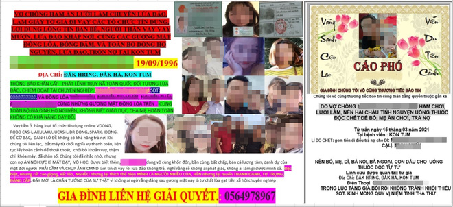 Không chỉ vậy, những đối tượng này còn dùng hình ảnh con trai chị T. rồi đăng cáo phó gửi lại cho gia đình chị T. gây sức ép.