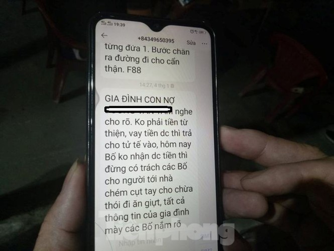 Điều khiến các nạn nhân hoang mang, lo sợ là những ngày qua do không đủ khả năng trả tiền lãi suất vay để đầu tư tiền ảo nên bị nhiều số máy lạ gọi, nhắn tin đe dọa với chung một nội dung: “Mày không trả đúng hẹn thì ra đường coi chưng, tao cho người chặt đứt tay, chân”, “Tụi tao biết hết nơi ở của mày và người thân nên mày không trả thì kết cục không tốt đâu”, “Tối nay ngủ đóng cửa cho cẩn thận, tao sẽ có vài bất ngờ dành cho mày đấy”.