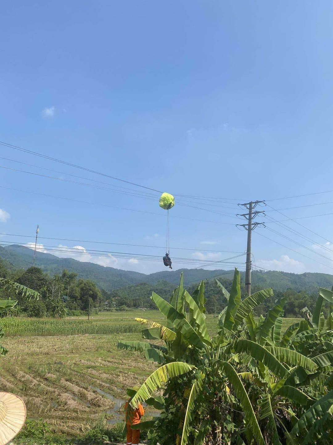 Mắc kẹt lơ lửng trên đường đây điện nhiều giờ, VĐV nhảy dù mới được giải cứu thành công.