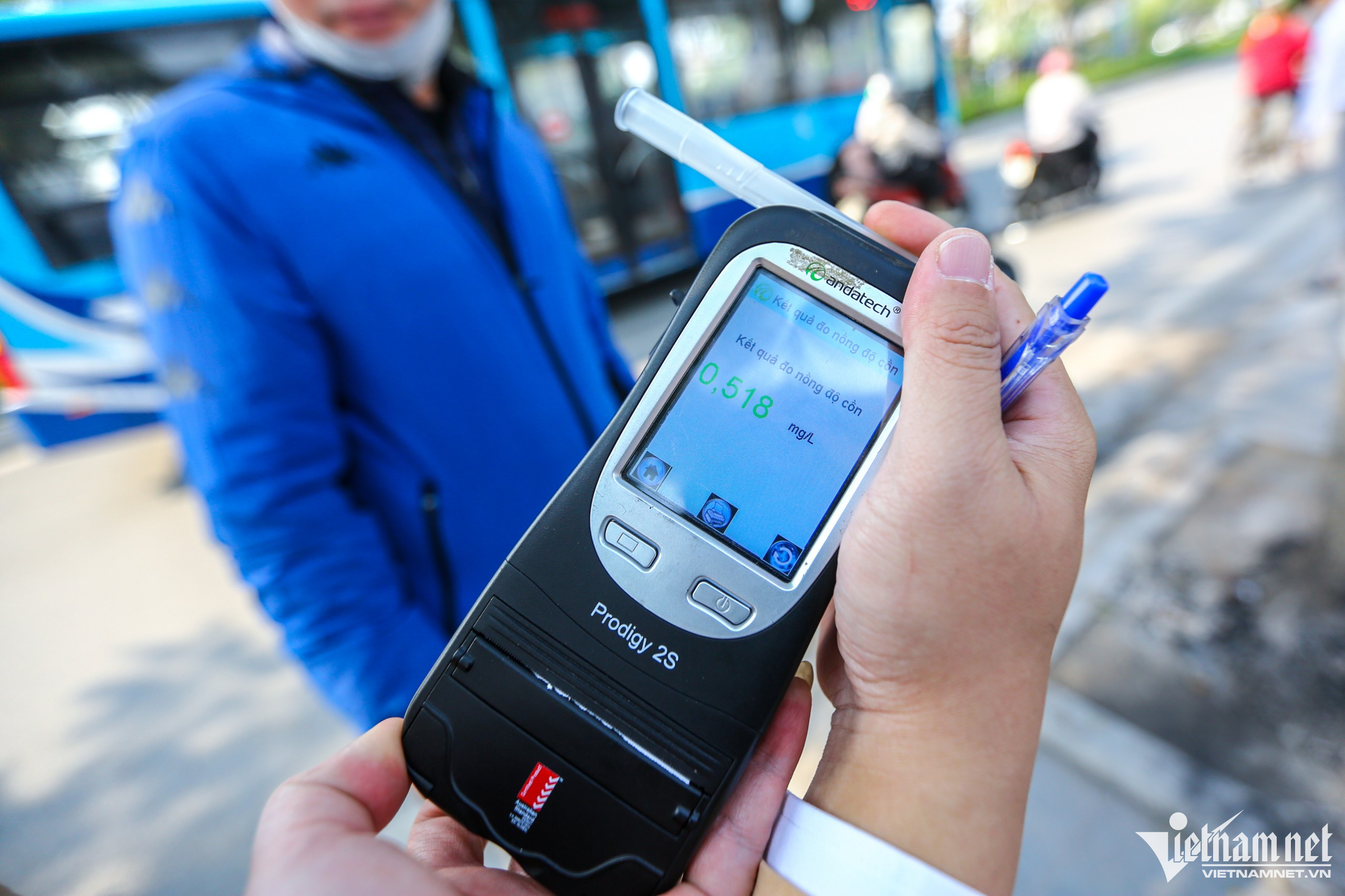 Tài xế N.A.Đ. (trú tại Đống Đa) đã bị tổ công tác kiểm tra nồng độ cồn. Tài xế này vi phạm ở mức 0,518 mg/L khí thở. Đây là mức nồng độ cồn rất cao, gấp 1,3 lần mức vi phạm tối đa quy định tại Nghị định 100/NĐ-CP.