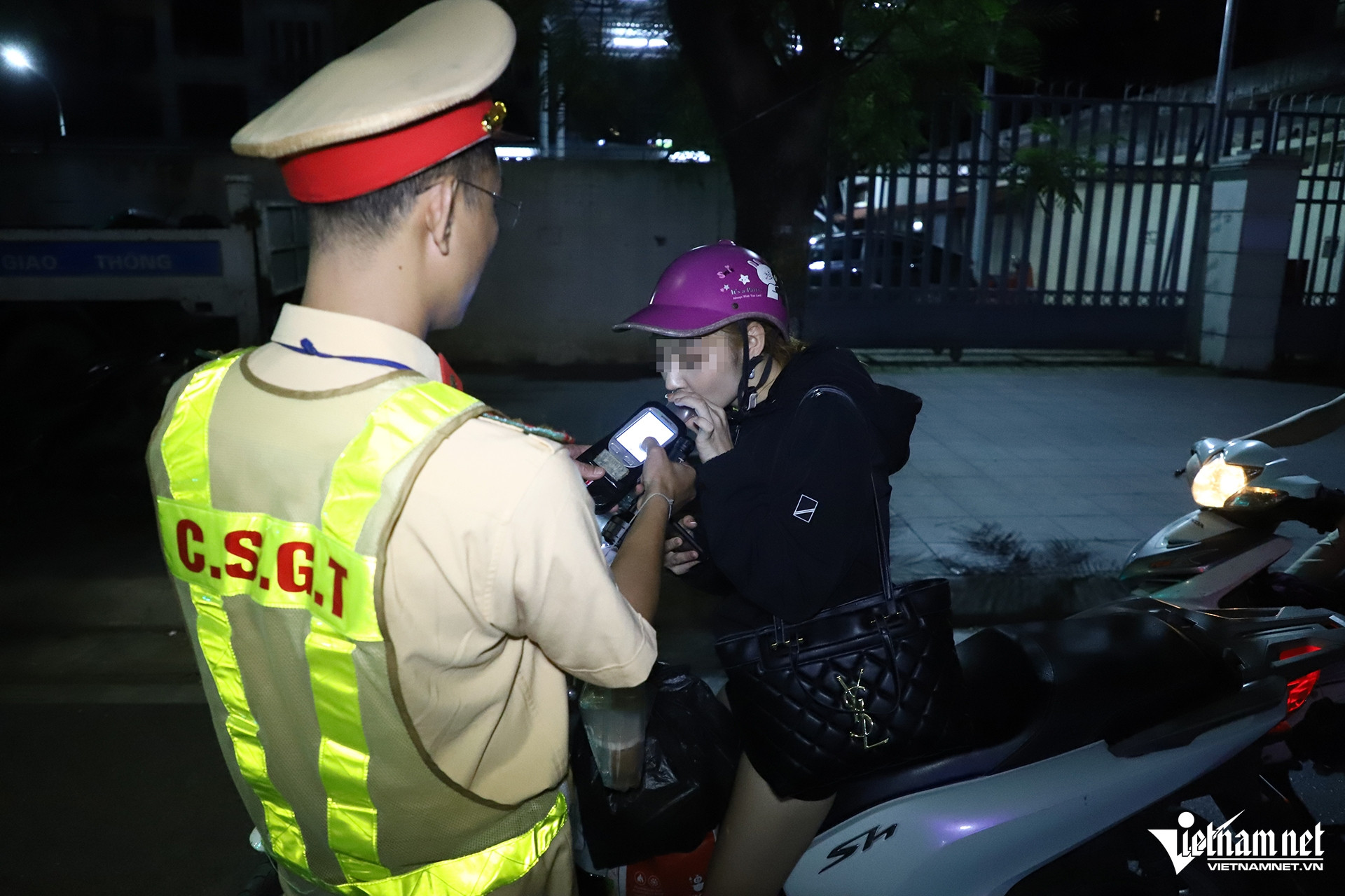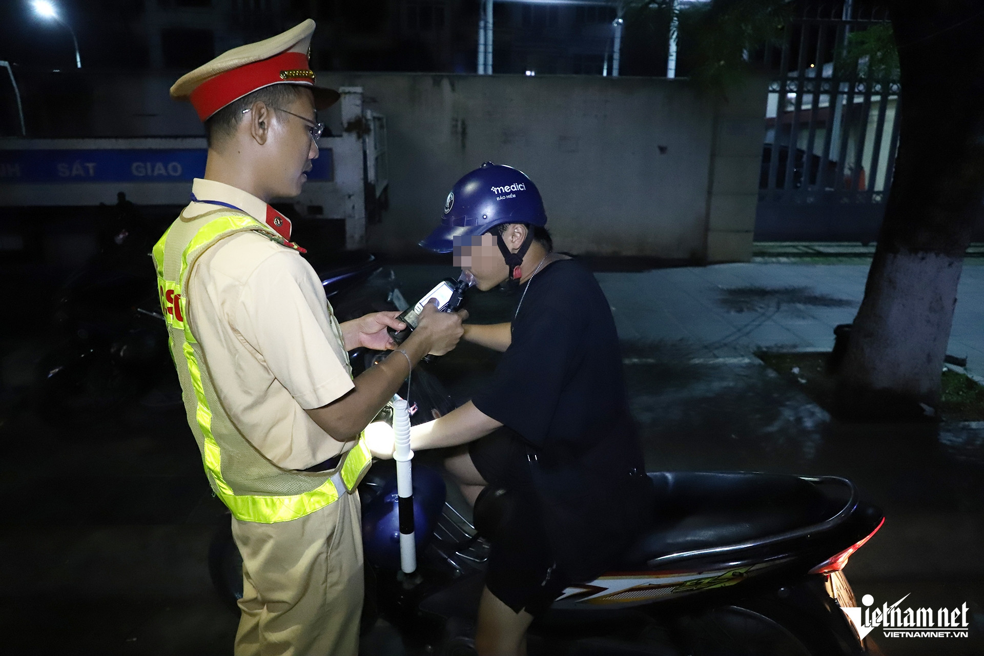 Đến 3h26, tổ công tác phát hiện trường hợp tài xế P.H.V. (SN 2002, trú tại tỉnh Điện Biên) điều khiển xe máy mang BKS 27Y1 - 014.XX, vi phạm nồng độ cồn ở mức 0,111 mg/L khí thở.