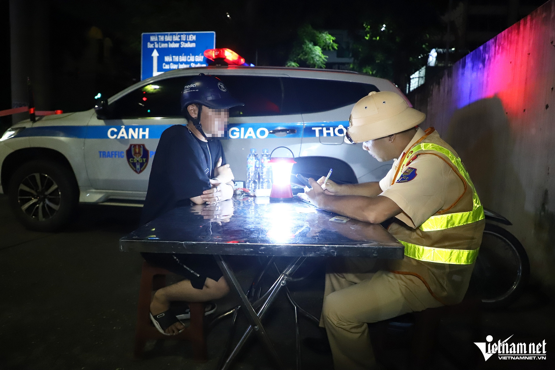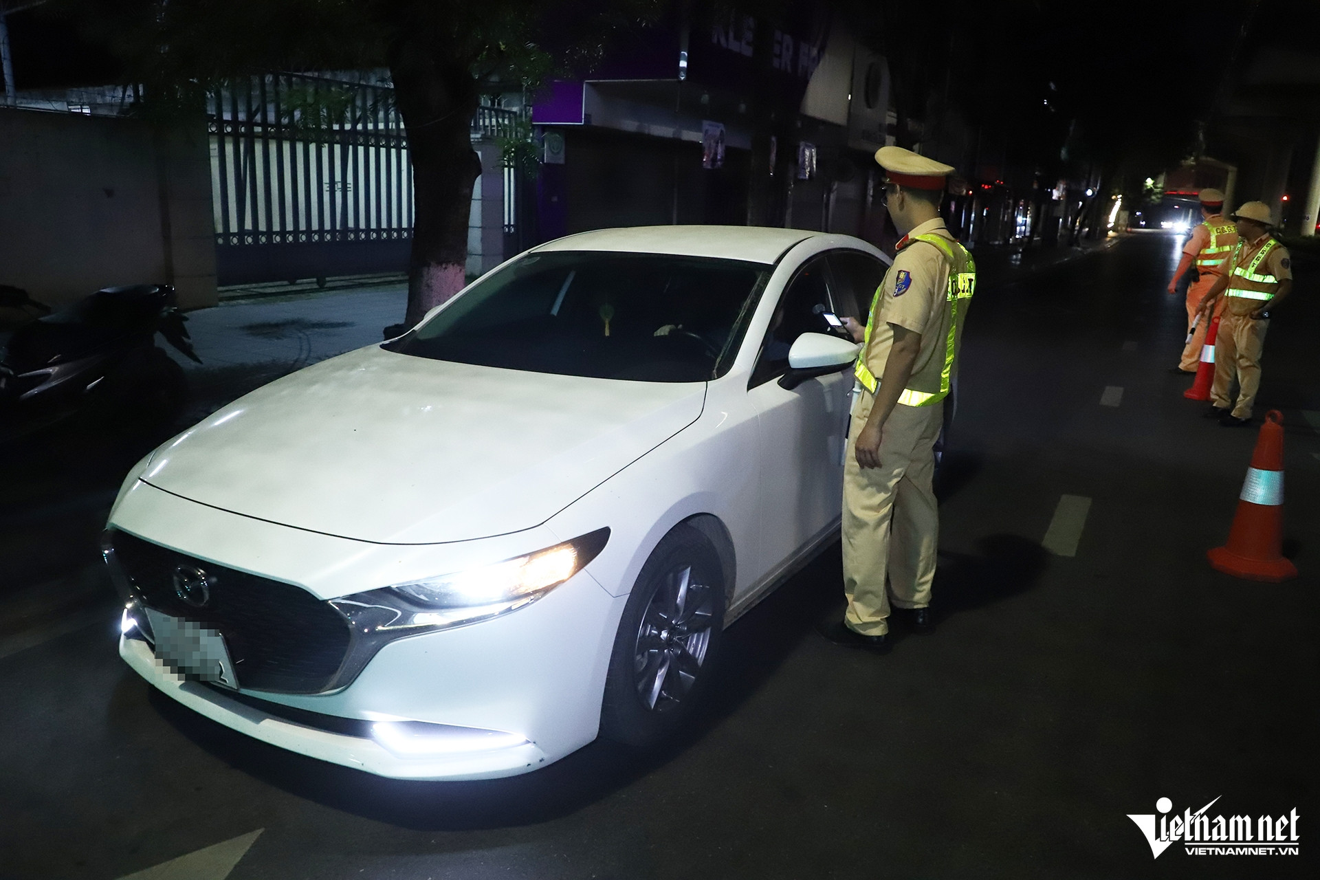 3h sáng 11/7, Tổ công tác của Đội CSGT đường bộ số 6 (Phòng CSGT Công an TP Hà Nội) bắt đầu lập chốt kiểm tra tài xế vi phạm nồng độ cồn trên đường Cầu Giấy (phường Dịch Vọng, quận Cầu Giấy, Hà Nội).