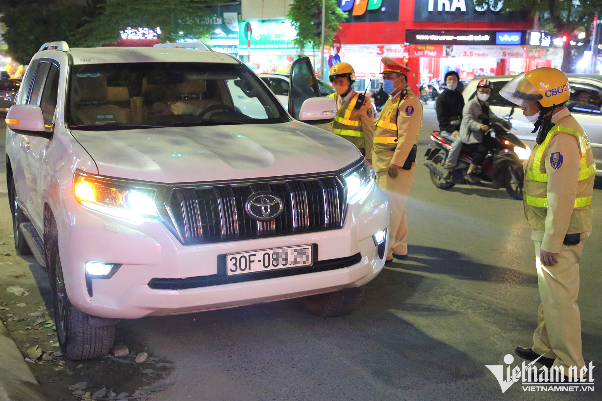Khoảng 21h, tổ công tác ra tín hiệu dừng ô tô nhãn hiệu Land Cruiser, biển kiểm soát 30F- 089.XX để kiểm tra. Qua đo nồng độ cồn, tài xế P.V.H. (SN 1989, trú tại quận Thanh Xuân) vi phạm ở mức 0,509 mg/L khí thở. Đây là mức vi phạm cao gấp 1,3 lần mức vi phạm cao nhất được quy định tại Nghị định 100/NĐ-CP.