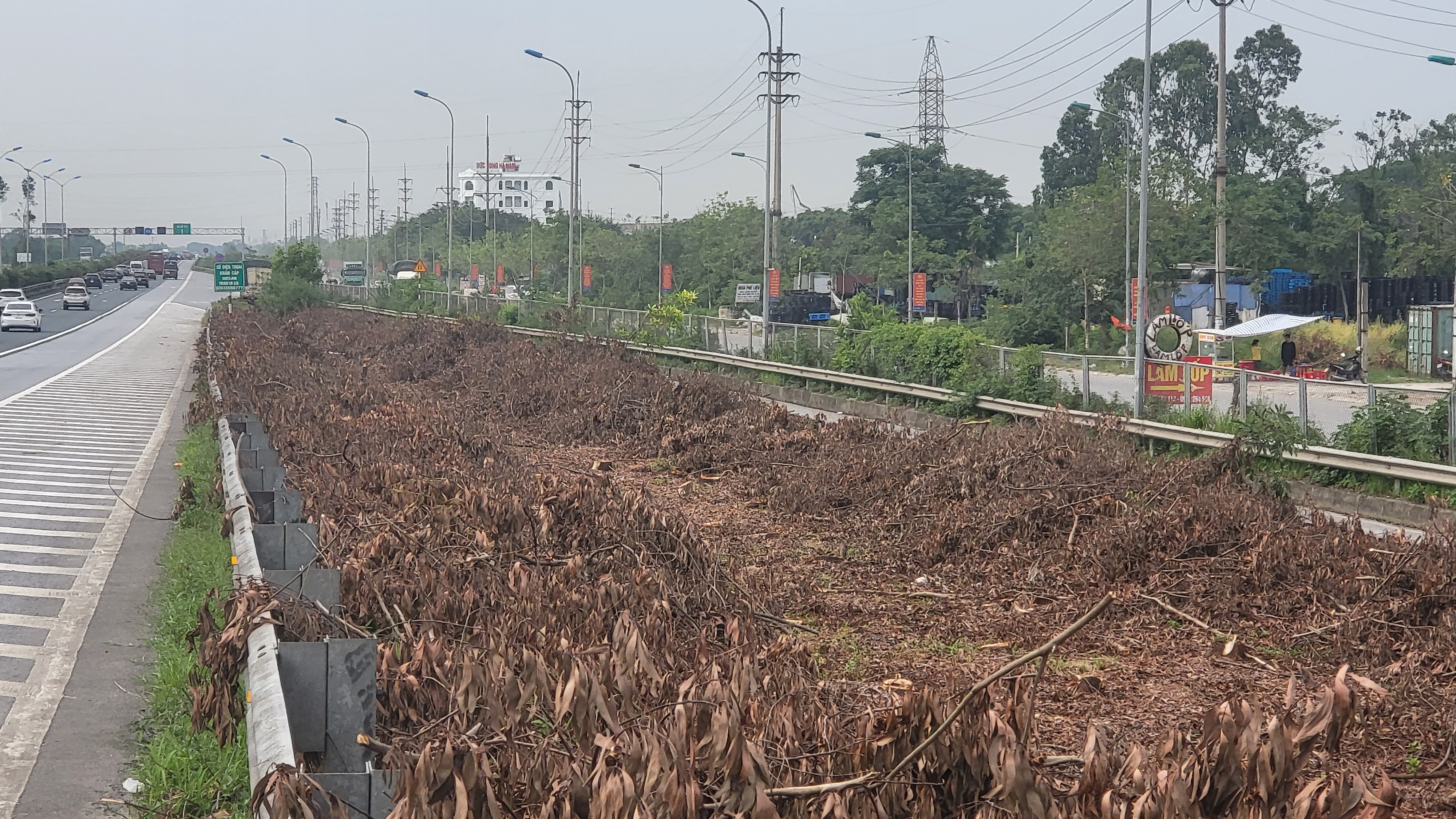 Ghi nhận của PV VietNamNet cho thấy, hiện nhiều đoạn tuyến cao tốc Cầu Giẽ - Ninh Bình, cây xanh bị chặt bỏ trơ gốc. Những cành cây khô héo nằm dưới ta luy đường đang được chủ đầu tư cho thu dọn.