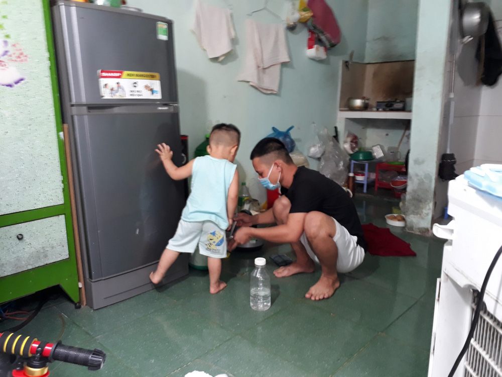 "Tổ dân phố có hỗ trợ gạo 1 đợt nhưng không có dầu, mắm, muối… để nấu ăn. Đợt này, tổ dân phố hỗ trợ thêm 1 thùng mì, 2 hộp cá rồi thông báo sẽ không nhận được 500.000 đồng. Số quà với tiền tôi thấy không đúng giá trị được hỗ trợ. Tôi và bà con ở đây mong muốn được nhận tiền để mua thức ăn, mua cho con hộp sữa", anh Đức nói.