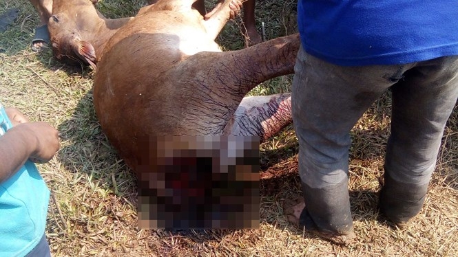 Khi phát hiện vụ việc, A Loét cùng gia đình lần theo bước chân thú lạ thì thấy đuôi con bò cái nằm sát rìa rẫy, trên rẫy mì của gia đình này còn bãi phân nghi là của thú lạ.