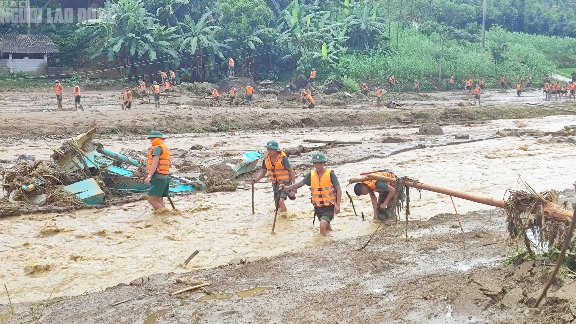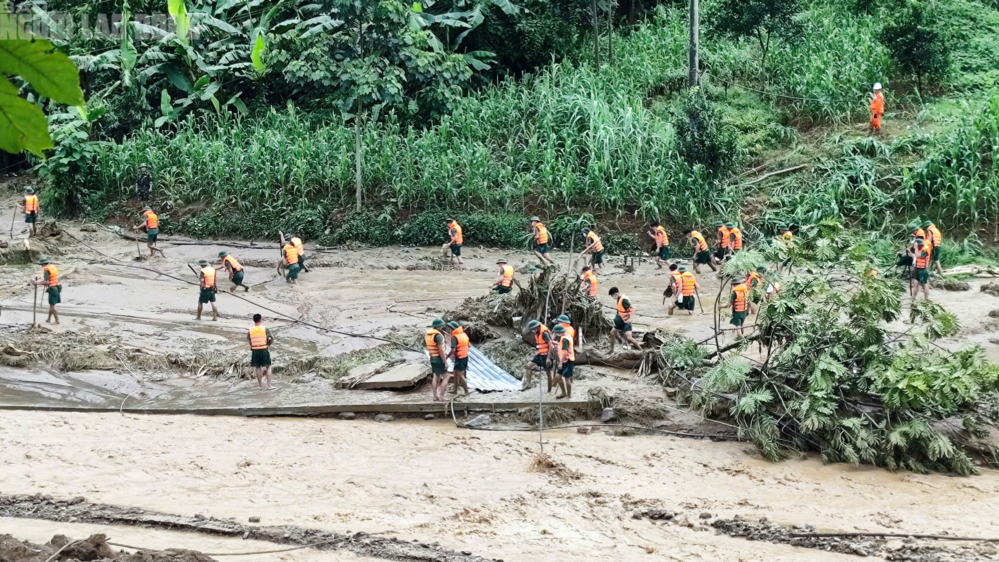Dưới cơn mưa tầm tã giữa núi rừng, hàng trăm người gồm các lực lượng quân đội, công an, chính quyền địa phương không quản khó khăn, nguy hiểm dò dẫm giữa hàng trăm m3 bùn đất, lật tìm từng nóc nhà, bụi cây... để tìm kiếm người mất tích.