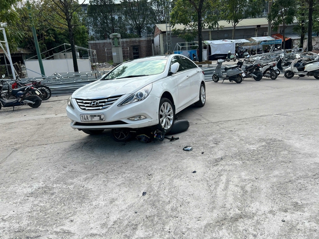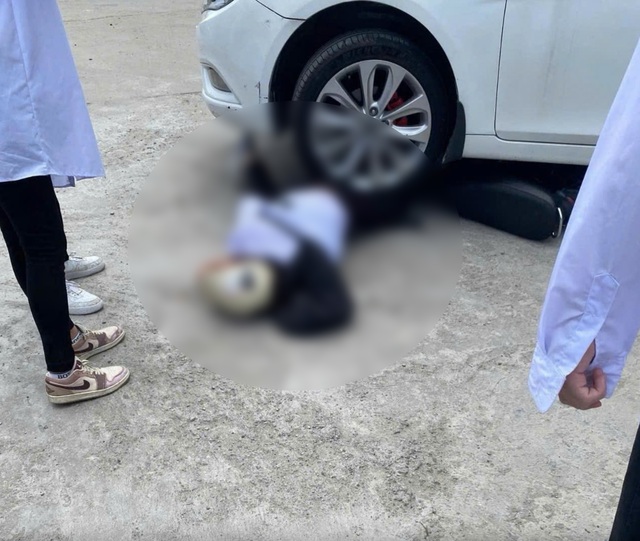 Cú va chạm khiến nữ sinh và xe máy điện bị cuốn vào gầm xe ô tô. Những học sinh khác có mặt tại sân trường đã vô cùng hốt hoảng khi chứng kiến cảnh tượng này, lập tức ra hỗ trợ nâng xe lên để giải cứu nạn nhân.