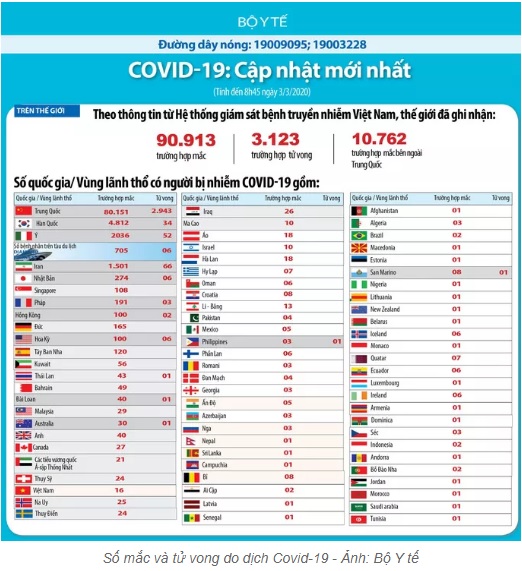 03/03/2020 18:28Việt Nam đang theo dõi sức khoẻ gần 14.000 người liên quan tới Covid-19