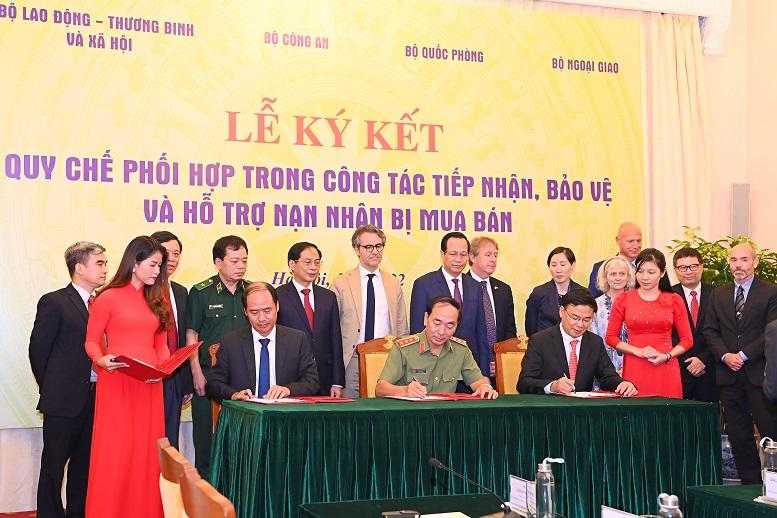 Ngày 18/7 vừa qua, hướng tới Ngày Thế giới và Toàn dân phòng chống mua bán người 30/7, các Bộ: LĐ-TB&XH, Công an, Quốc phòng và Ngoại giao cũng đã ký Quy chế phối hợp trong công tác tiếp nhận, bảo vệ và hỗ trợ nạn nhân bị mua bán.